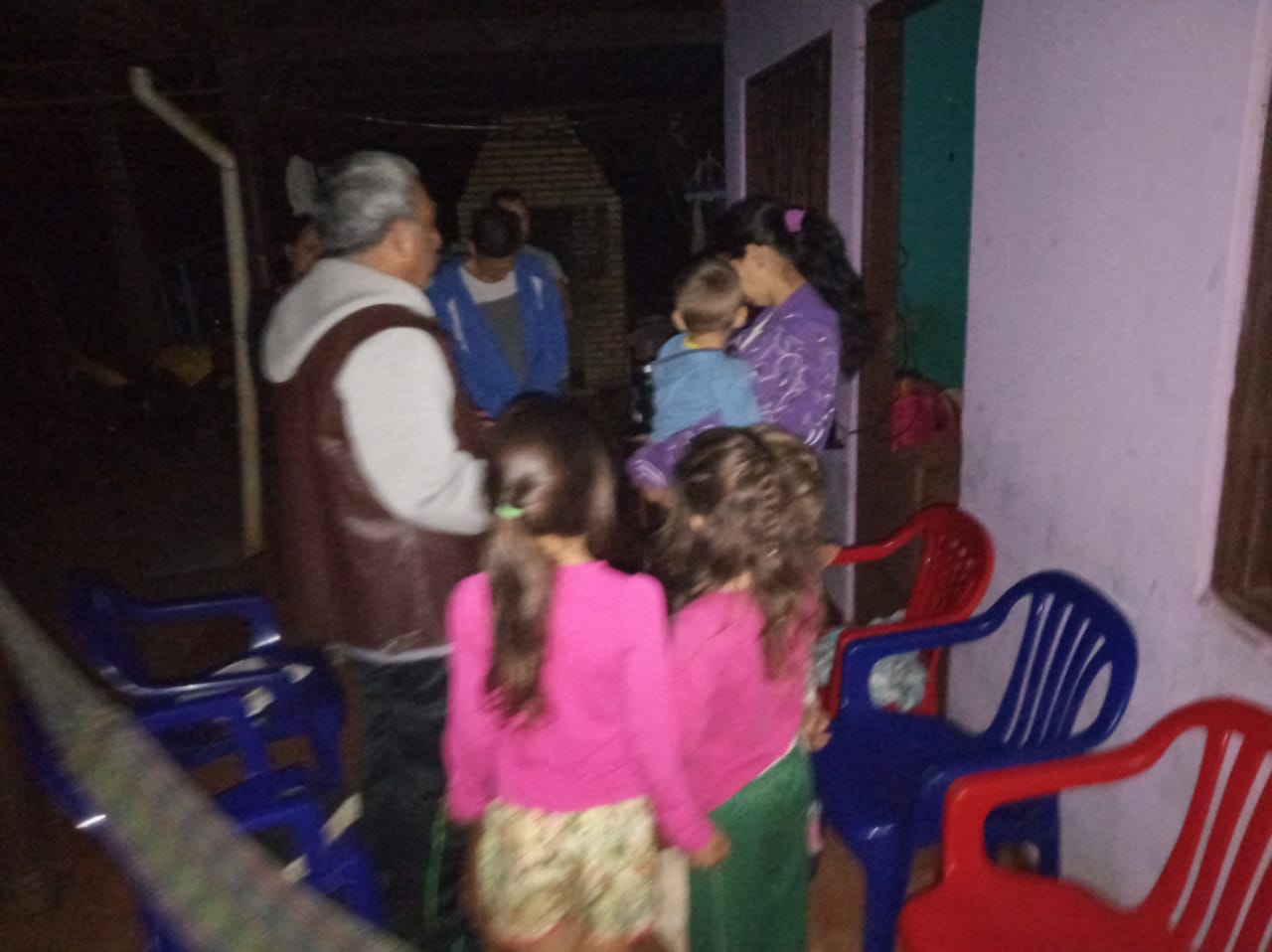 Como ainda não possuímos cadeiras, os irmãos se sentam no chão mesmo com a temperatura de 8°C. Para honra e glória de Deus 03 almas já se renderam ao Senhor.
