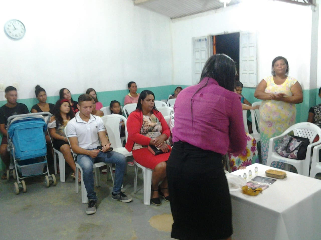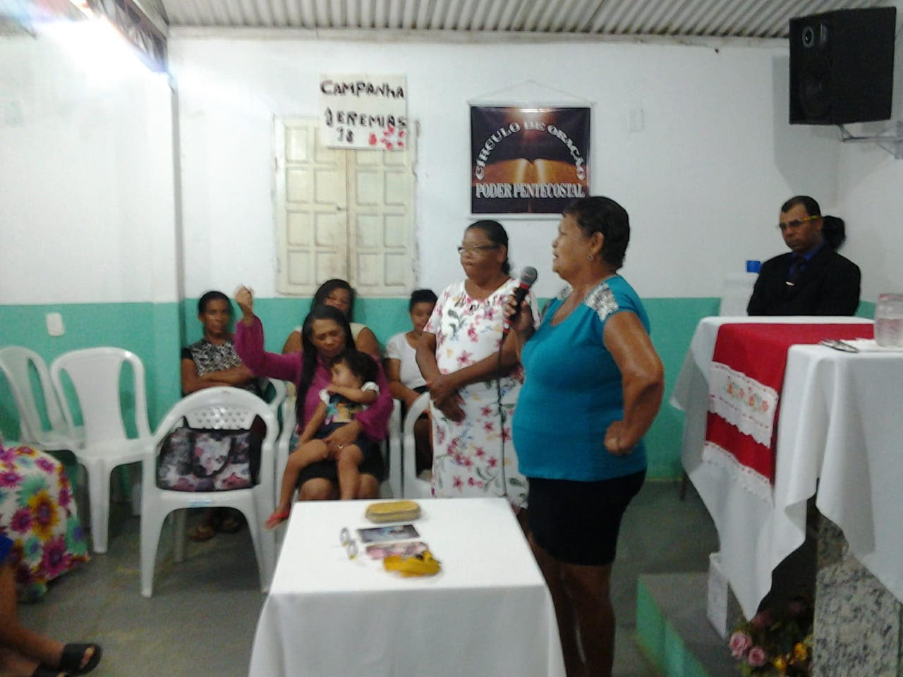 Culto de quinta-feira de campanha que a missionária Laudiceia também abriu no tema em Jeremias que fala sobre descer à casa do Oleiro.