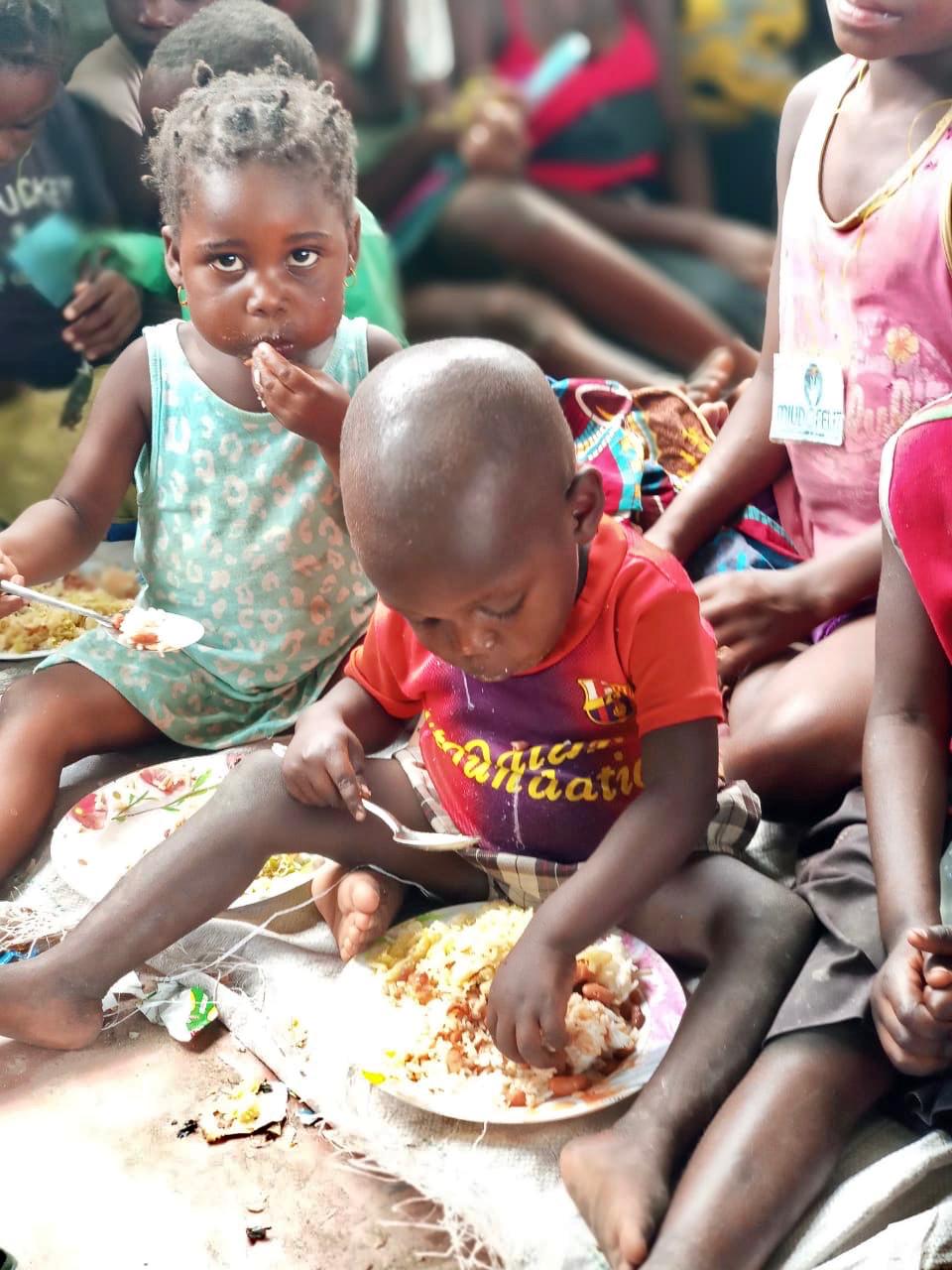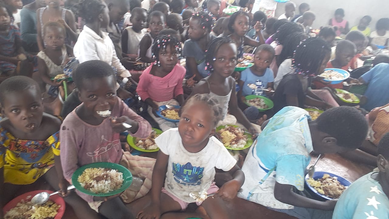 As Missões Graça & Vida, em parceria com o Instituto Tia Jô, ajudam a alimentar diariamente cerca de 1.300 crianças no Projeto “Miúdo Feliz”, em Sofala, Moçambique – África.