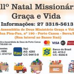 Daqui a pouco iniciaremos o 2º final de semana da XIII Viagem Missionária Graça & Vida. As viagens que se iniciam hoje (11/12/2020) serão para as cidades de Aparajú e Barra de Caravelas (BA), Cariri (MG), Água Doce do Norte e Ecoporanga (ES).