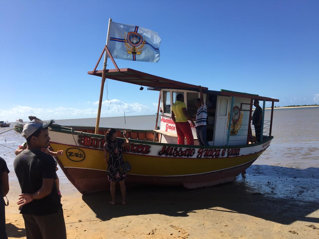Momento glorioso e histórico hoje (02/06/2019) pela manhã em Cerimônia realizada no rio Caravelas, no Distrito de Barra de Caravelas, em Caravelas/BA, onde estivemos inaugurando o primeiro barco missionário das Missões Graça e Vida.